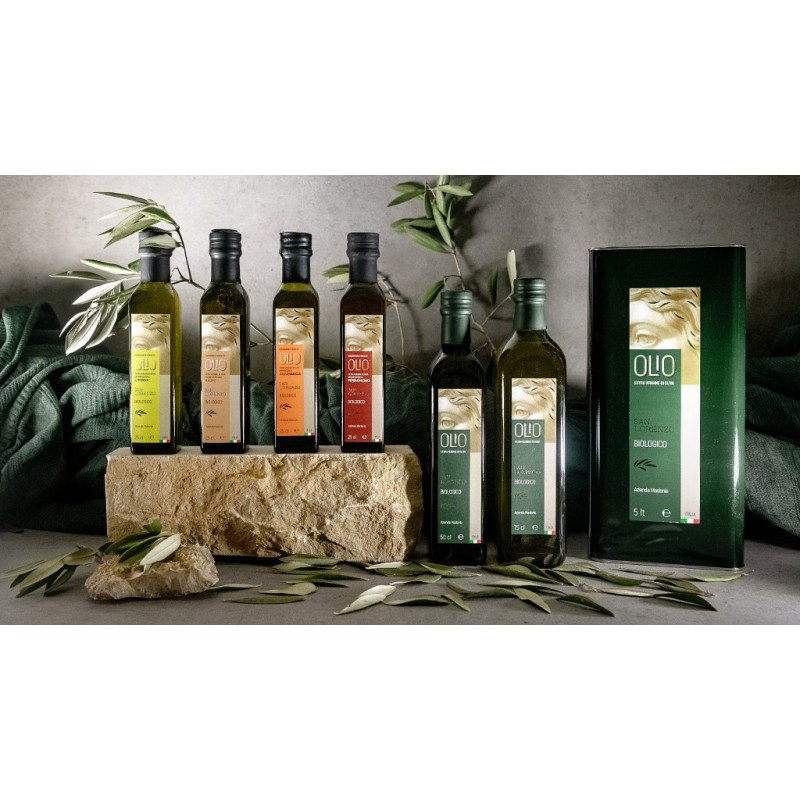 Alle von San Lorenzo hergestellten Öle sind biologisch. Die Sorten sind Biancolilla dei Monti Sicani (40%), Nocellara del Be-lice (40%), Ogliarola di Messina (10%) sowie andere Sorten (10%). Sie sammeln die frisch reifen Oliven und mahlen sie am selben Tag gemeinsam, wodurch ein sehr duftender milder, mittelfruchtiger, süffiger, ein wenig bitterer und ein wenig scharfer Geschmack entsteht. Die Farbe des Öls ist grün mit goldenen Reflexen, der Duft verrät den ganzen Wert frisch gemahlener Oliven, leicht würzig und ein wenig bitter. Das ist Olivenöl: einfach gemahlene Oliven.Sie haben sich entschieden, kein einziges Sorten-Öl herzustellen, um die Tradition zu respektieren, aber auch weil sie das erzielte, milde Ergebnis sehr zufrieden stellt und das Öl für viele Lebensmittel und Gerichte verwendet werden kann.