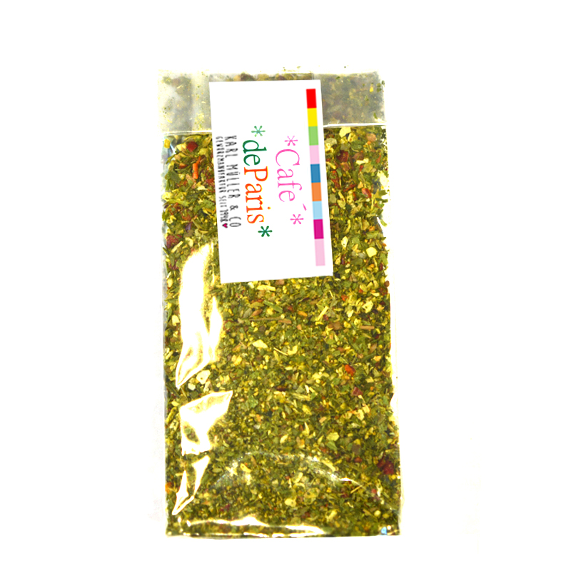 Verwenden Sie die grüne, aromatische „Café de Paris“ Mischung zum Abschmecken + Verfeinern von Gemüse, SahneSaucen, Eintopfgerichten.